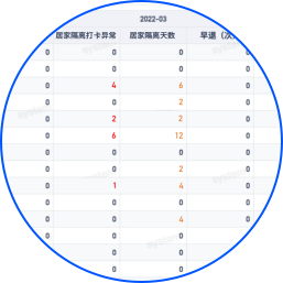 数据报表每日通过隔离居家考勤方案和健康检测管控方案实时获取数据生成统计报表,并通过eRoad数据洞察形成相关报告和数据指标分析