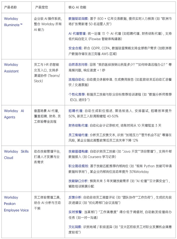 • 均将数据视为 AI 战略的 “石油”,通过统一数据基座构建差异化竞争力,从而使得原有HCM 系统从“记录系统”跃升到“洞察引擎”;