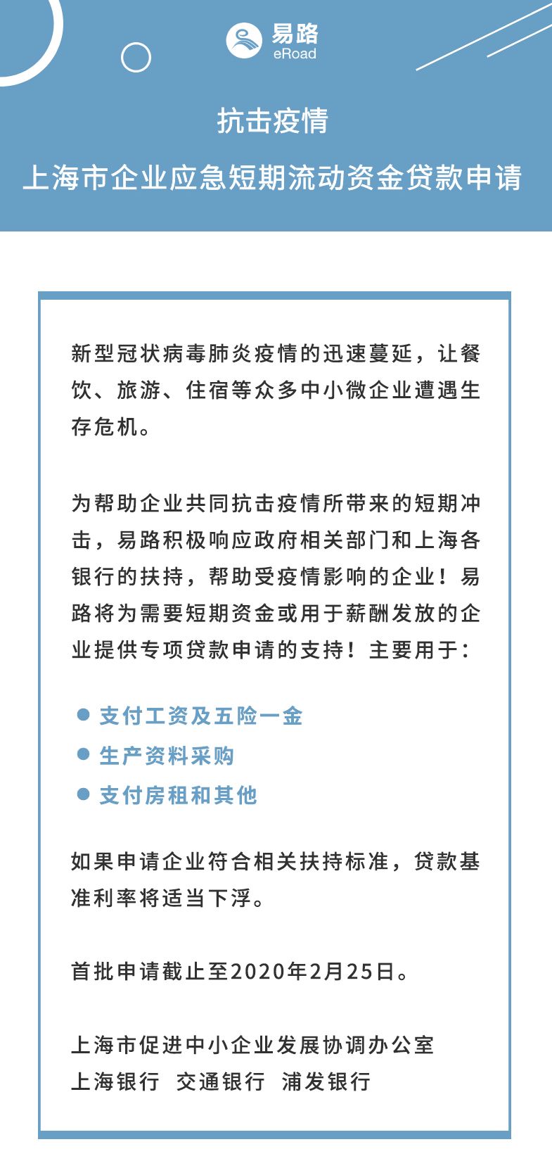 易路对上海市受疫情影响企业提供的贷款帮扶