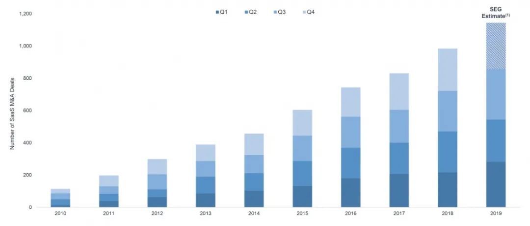 据全球投资银行SEG(Software Equity Group)发布的《2019年第三季度SaaS并购报告》显示,SaaS并购市场交易量在2019年第三季度达到了314笔,同比增长24.6%,创历史新高。在这场“战疫”的催化下,2020年全球SaaS行业或将迎来又一波增长。