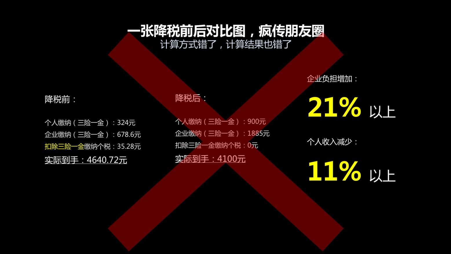 近日,一张降税前后的对比图疯传朋友圈,王天扬对此进行了辟谣,其计算方式及结果皆不正确。
