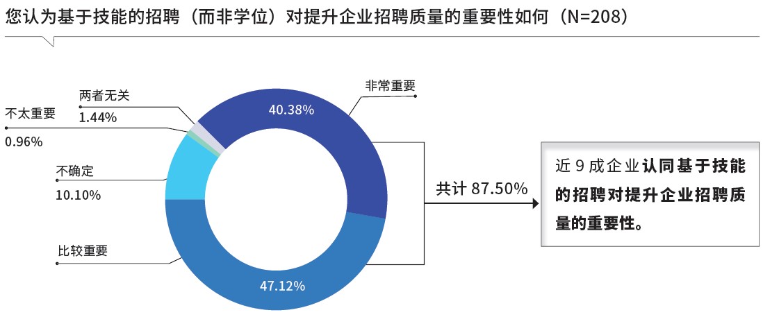 近年来,中国企业的招聘需求呈现出收紧趋势。数据显示,高达74.52%的企业2025财年的招聘需求量与去年持平甚至有所降低。在这种保守的招聘策略下,企业更加注重用人质量,75.96%的企业认为基于技能的招聘对提升招聘质量“比较重要”或“非常重要”。
