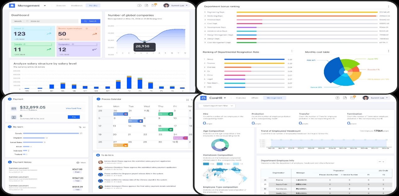 以薪酬为核心的全球薪资福利管理: 薪酬是人力资源管理的核心,软件应具备强大的全球薪资福利管理能力,并能根据各国法规进行调整。