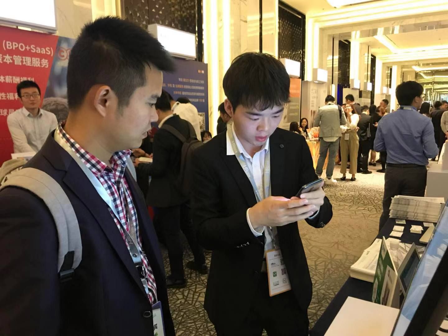 “2018HRoot薪酬福利年会”参展机构展台前的热烈交流